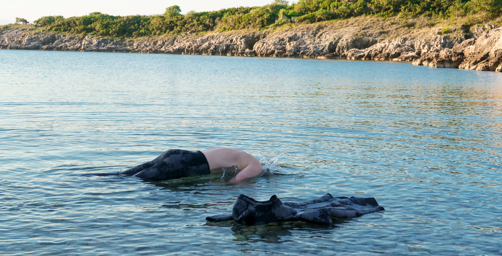Prvi vdih, drugi, tretji - poskušam se umiriti do mere, ko bom srčni utrip čutil brez, da bi iskal žilo, da ga bom brez težav slišal v ušesih, ne zato, ker bi mi srce tako razbijalo temveč zato, ker sem preostalo telo dovolj umiril, da mu lahko prisluhnem. Počasi ga štejem, in ko pade dovolj nizko je čas za potop. Lahko na 10 metrov globine, lahko na 20 ali več, ni važno. Če ni potop sproščen potem je